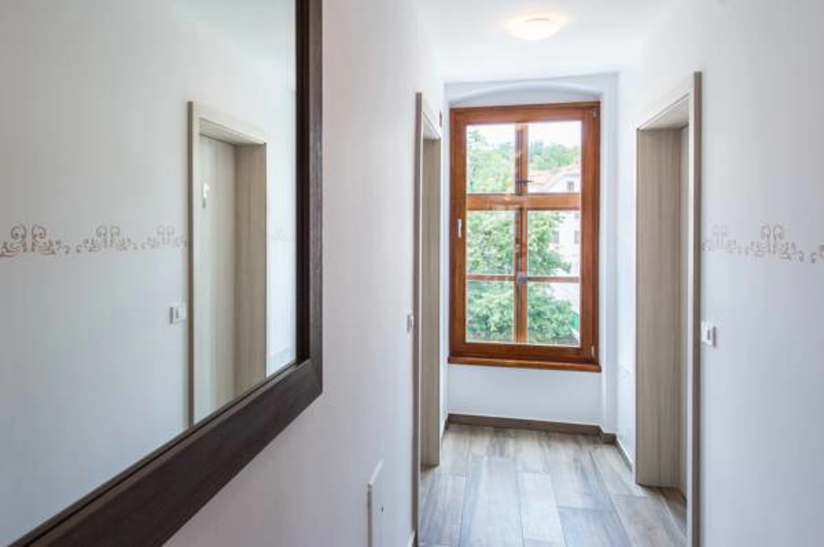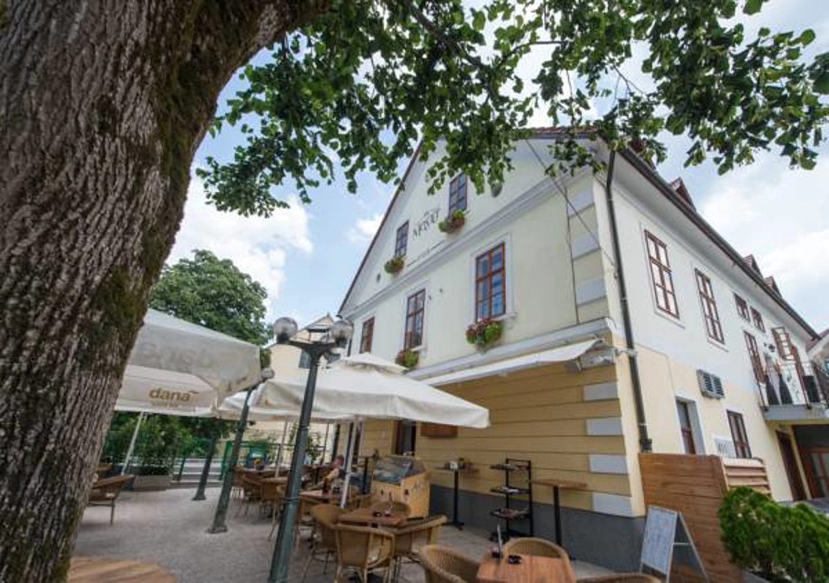 Hotel Pri Mostu is renovated cultural monument in the center of Dolenjske Toplice, which boasts an enviable tradition. Hotel is located next to the river that gives even more charm to your experience. Today the family hotel offers accommodation in apartment and 6 rooms. We will pamper you with sweet treats, cocktails and socializing at various events. The hotel is situated above a bar, the reception is inside the bar. There is also a separate entrance behind.